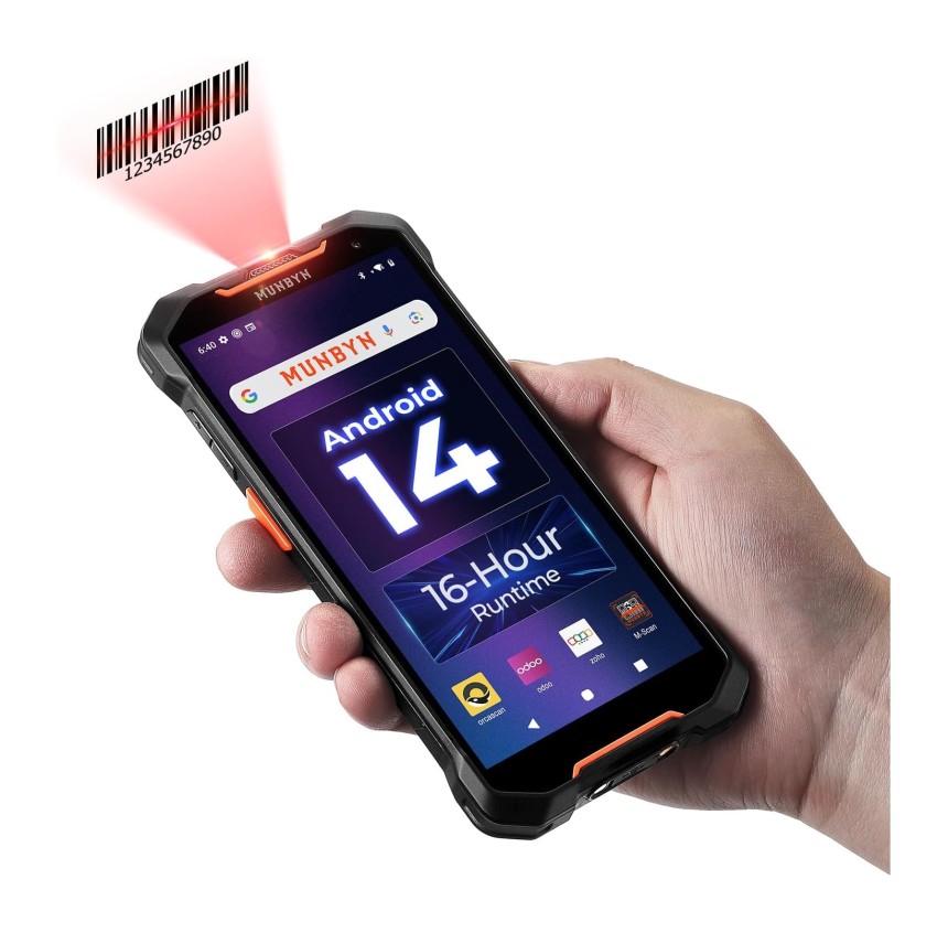 MUNBYN AS01P 2025 Scanner PDA Android 14, Écran 6", 4+128 Go, Scanner Zebra SE4710 (1D/2D/...
