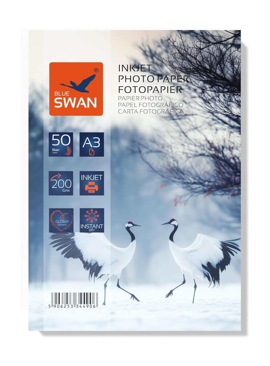 BLUE SWAN Papier Photo Brillant A3 Jet d’Encre, 200 g/m², 50 Feuilles, Recto Brillant, Séc...