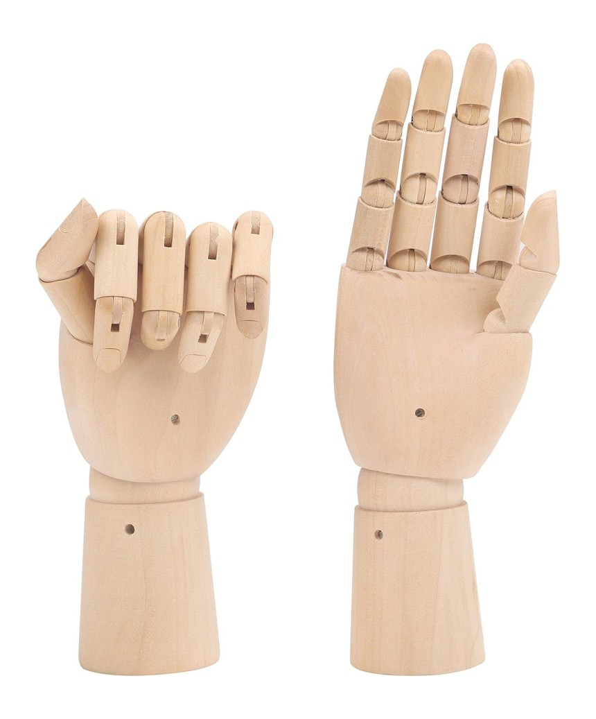Main Articulée en Bois Gauche et Droite (2 Pièces) - Longueur 18,5 cm - Main Mannequin Art...