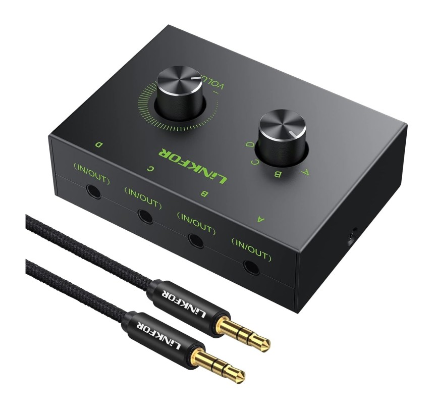 LiNKFOR 4 Ports Commutateur Audio Stéréo 3.5mm - Support 1 in 4 Out ou 4 in 1 Out avec 3.5...
