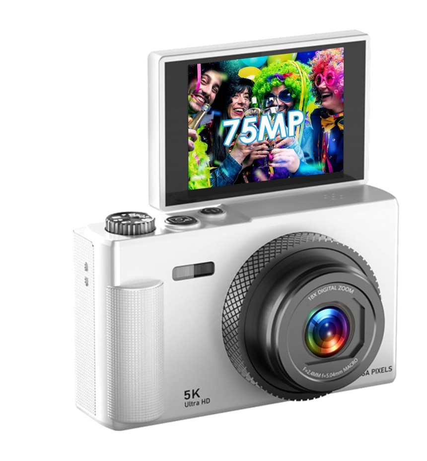 Appareil Photo Numérique, UHD 5K​​ 75MP Digital Camera avec Carte Micro SD 64 Go, Écran Ro...