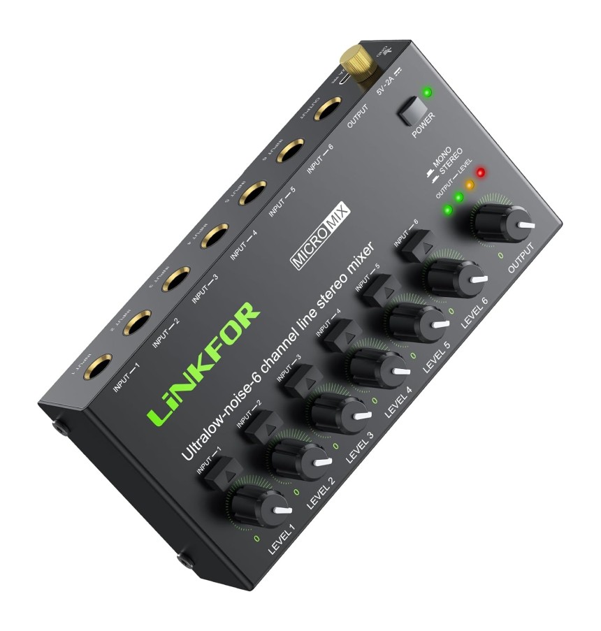 Mini Mélangeur Audio Stéréo 6 Canaux Mélangeur de Ligne Ultra-Faible Bruit Switch Stereo/M...