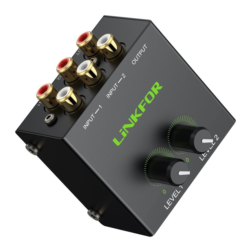 Table de Mixage Stéréo Passif 2 Voies RCA Mini avec Contrôles Volume Séparés Interfaces Do...