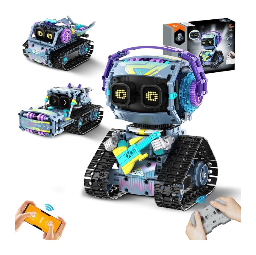 Robot Programmable Enfant, Kit Robot Enfant à Construire 5-en-1, Télécommande 2.4GHz et Bl...