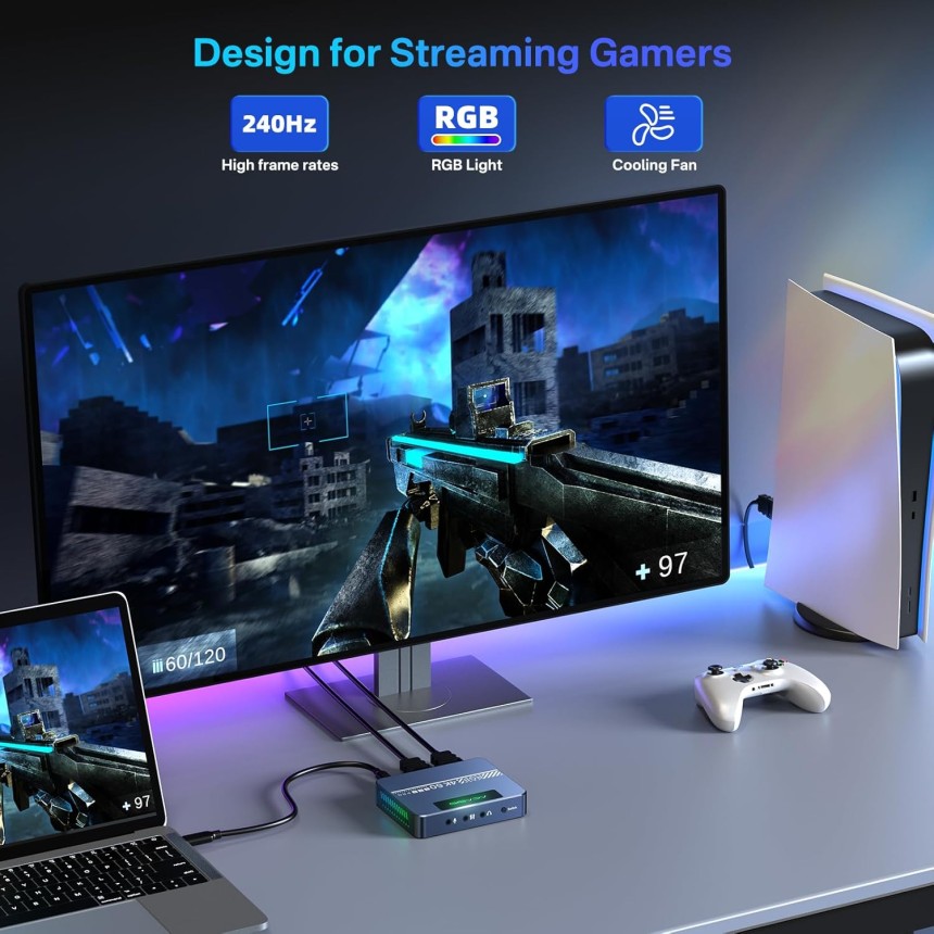- ▶️ Large compatibilité : compatible avec une gamme de consoles de jeu, y compris Xbox, PS5 et Switch, et capable de diffuser sur diverses plateformes comme YouTube et Twitch.