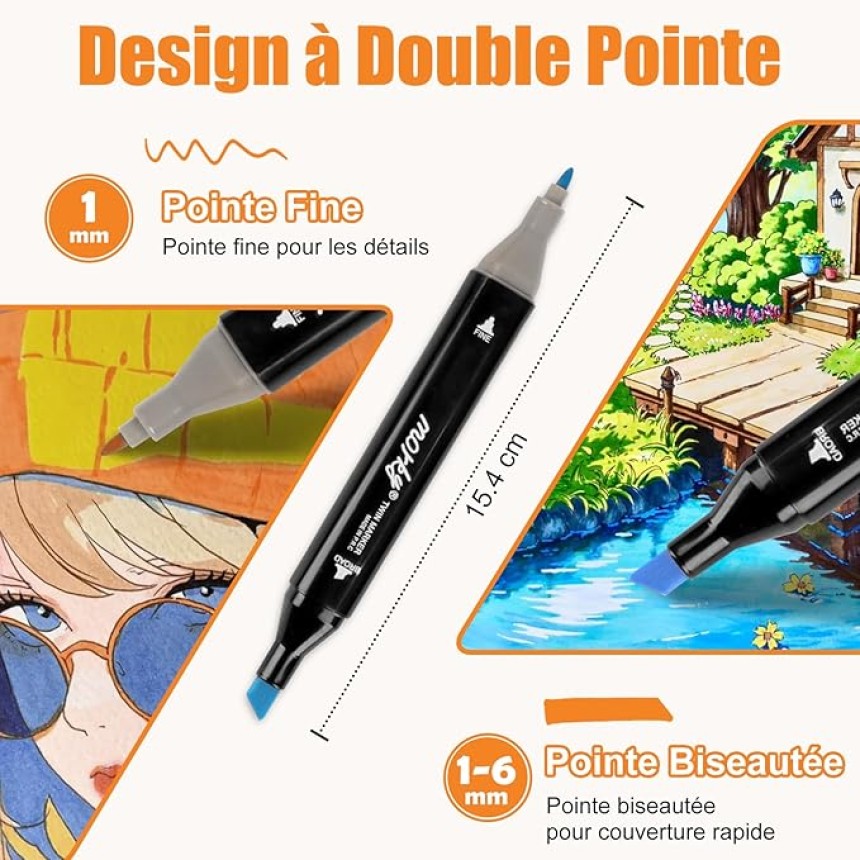 - ▶️ 1x Marqueur Double Pointe Dessin + 168 Stylos à feutre Alcool pour Artistes