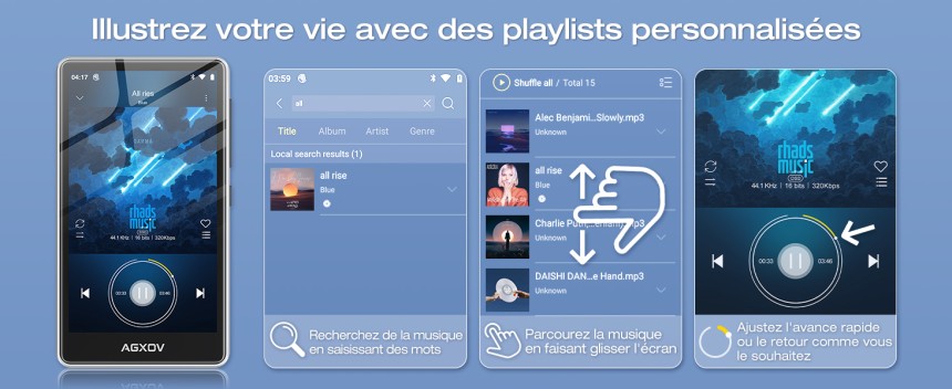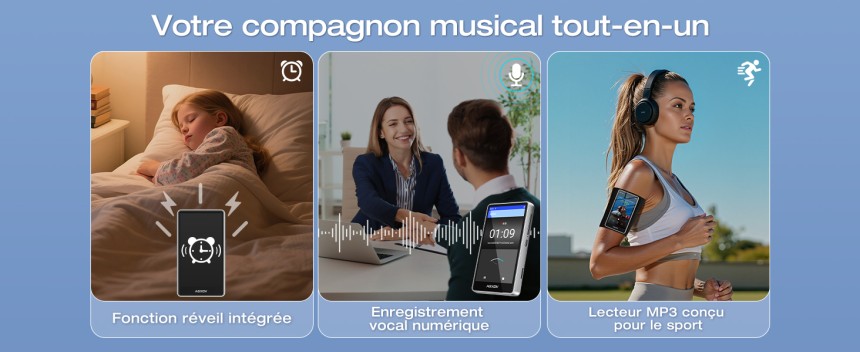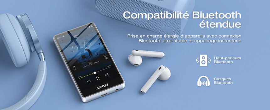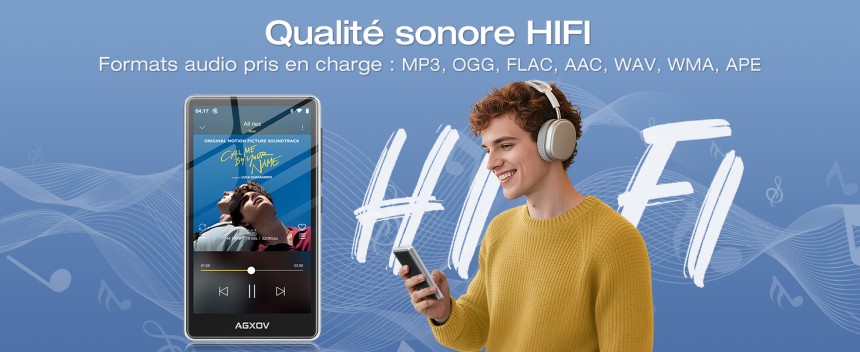 - ▶️ Son HiFi clair et immersif : Grâce à sa puce de décodage audio haute fidélité, ce lecteur mp3 bluetooth offre un rendu sonore propre, équilibré et riche en détails. Compatibilité large avec les formats MP3, FLAC, APE, WAV, OGG, AAC, WMA – parfait pour les amateurs de qualité audio. Restitution claire des voix, basses maîtrisées, scène sonore naturelle. Une excellente option pour profiter de votre musique avec une véritable qualité HiFi.