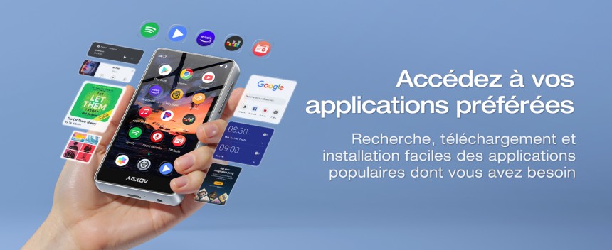 - ▶️ Streaming compatible (Spotify/Deezer) : Ce lecteur mp3 spotify est compatible avec les applications musicales modernes grâce aux apps Spotify, Deezer et Amazon Music préinstallées. Vous pouvez écouter vos playlists en ligne ou télécharger vos morceaux pour une écoute hors connexion. Une solution moderne pour profiter de votre musique sans utiliser votre smartphone.