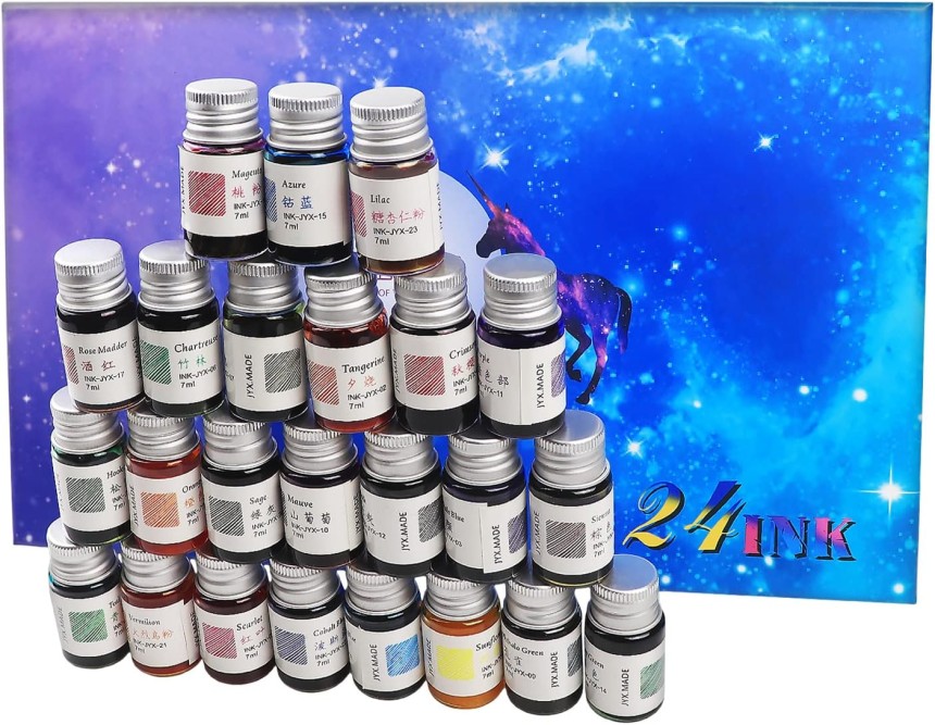 Encres de dessin, encres de calligraphie, set de 24 stylos colorés pour écrire, dessiner.