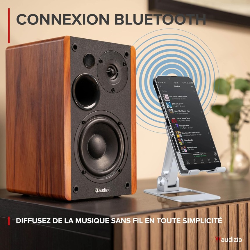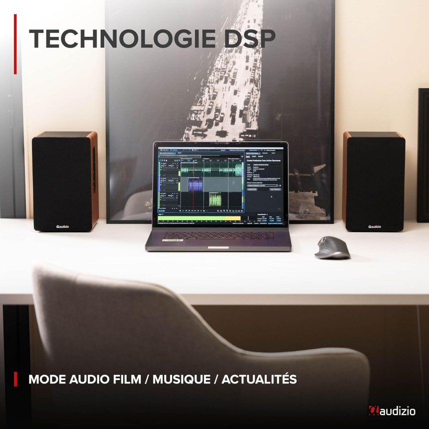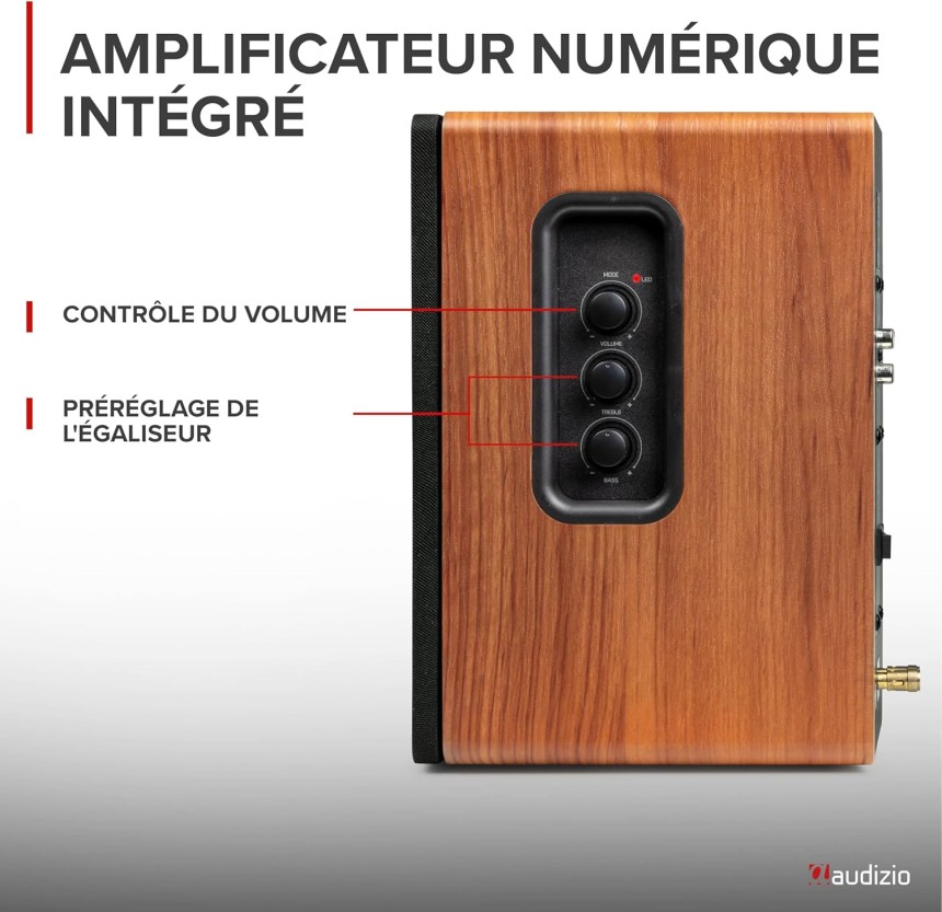 Enceintes Audizio Hi-FI Bibliothèque Actives 80W avec BT 5.0 de studio Pre-Amplifier.
