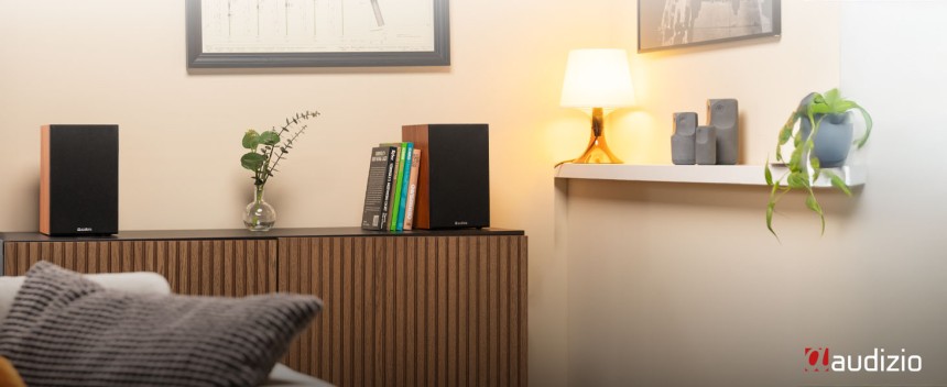 - ▶️ Design raffiné finition bois avec façade noire amovible, apportant une touche chaleureuse et moderne, compactes pour une installation facile sur meuble TV, étagère ou bureau.