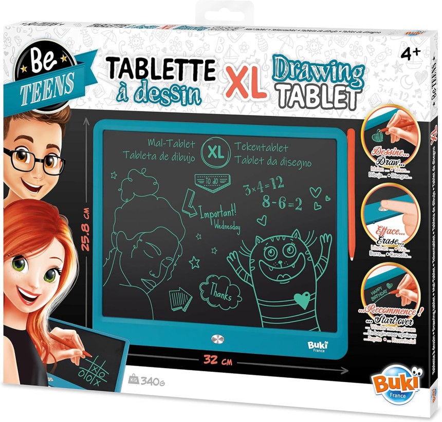 ▶️ Description du produit : Ecris, dessine ou prends des notes sur la tablette à dessin grand format avec écran LCD. Pour écrire, il suffit d’utiliser le stylet comme un stylo. Pour effacer, il suffit d’appuyer sur le bouton ! La tablette ne pèse que 340 g et se transporte facilement. Un petit bouton au dos permet de verrouiller le dessin pour qu'il ne s'efface pas. Dimensions : 25,8 x 32 cm. Nécessite 2 piles CR2025 incluses. Dès 4 ans.