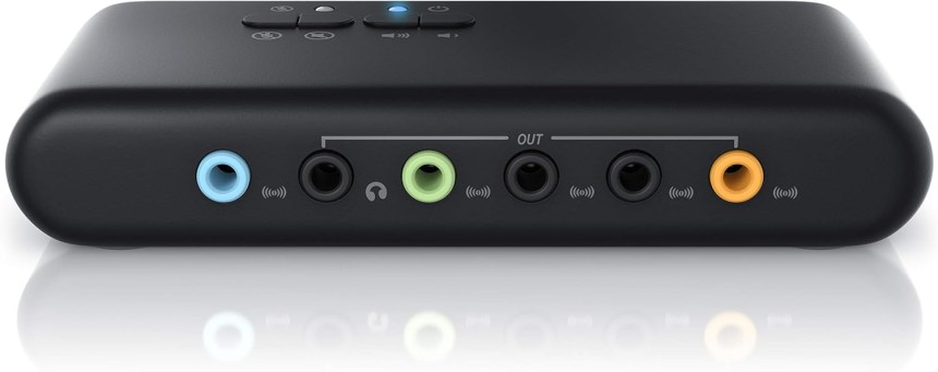 - ▶️ Interface : USB 2.0 spécification Full Speed | sorties audio : 5x jack (Line Out, Front L/R, Side L/R, Rear L/R, C/Sub), 1x Toslink (SPDIF-OUT) | entrées audio : 3x jack (Line In, Mic 1, Mic 2), 1x Toslink (SPDIF-IN) | jeu de puces : Cmedia CM6206