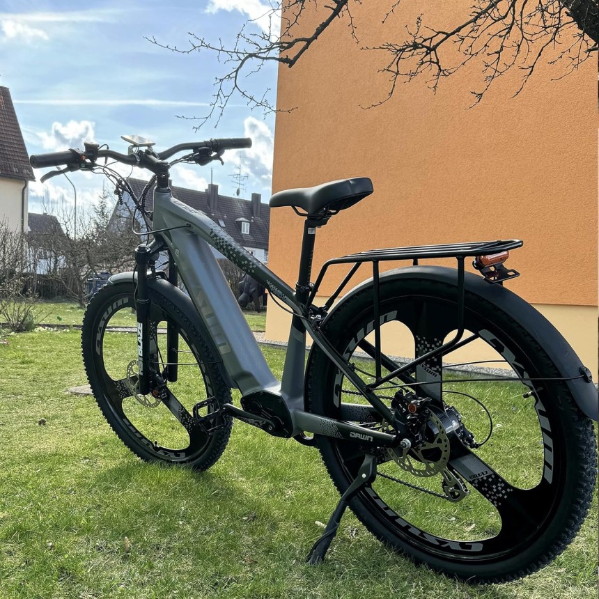 - Conception humanisée : VTT électrique tout-terrain, conception d'amortisseur avant, coussin de siège confortable, conduite plus confortable. Le vélo électrique est entièrement équipé de phares, feux arrière, ailes, porte-bagages arrière, etc.