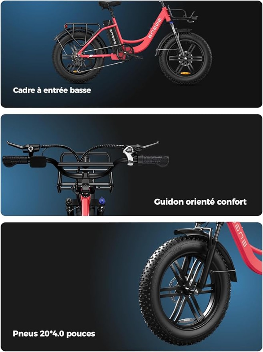 ▶️ Un design confortable et élégant : le vélo électrique L20 est doté d'un cadre bas confortable et d'une selle réglable qui convient à toutes les tailles. Un ensemble qui allie confort et style.