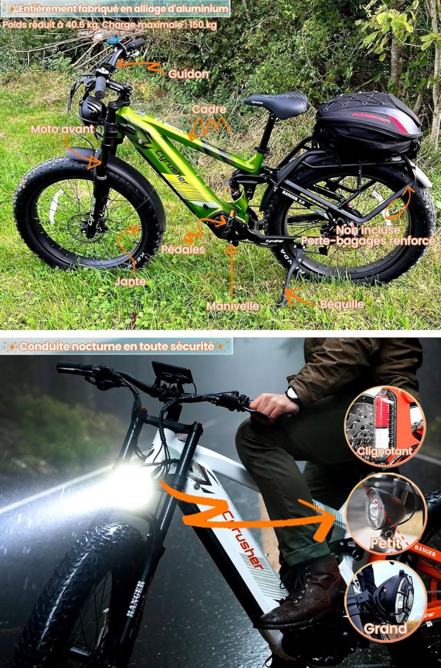 - ▶️ Nos vélos électriques sont envoyés et reçus chez vous en pièces. Vous devez monter le guidon, les deux roues, la selle en général. Voir les conditions ci-dessus pour la modalité de montage de nos règles.