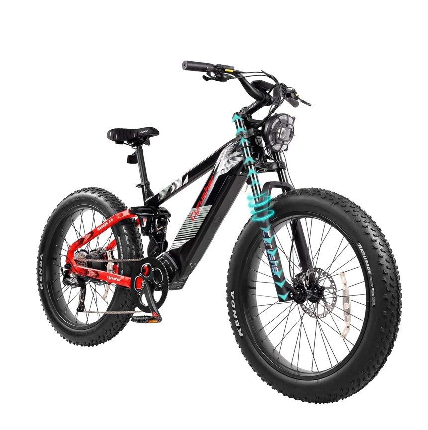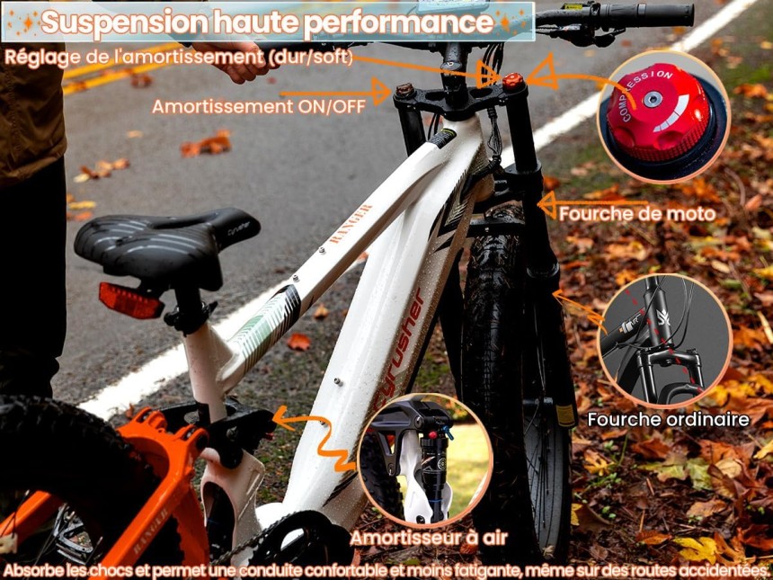 Vélo Électrique en Aluminium Ranger 26Pouces, 250W 25 km/h 52V 20Ah 1040Wh 128 km, Amortisseur à air, Freins à Disque Hydrauliques