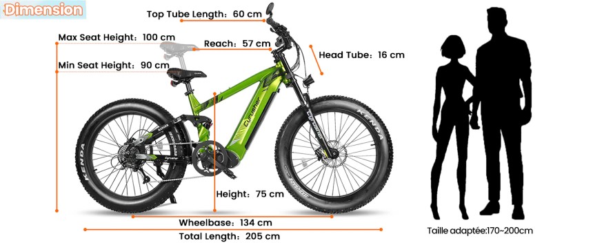 - ▶️ 26″ Ranger 2.0 & Trax 2.0 Fat E-Bike pour adultes — Conçu pour les hommes et les femmes de grande taille 170-200 cm .