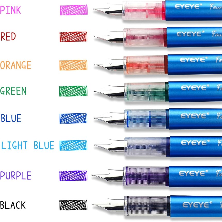 - ▶️ Ensemble multicolore : le lot de 8 stylos plume jetables Eyeye est disponible en couleurs assorties, pointe M, parfaits pour le codage couleur, le journal, le dessin et les projets artistiques.