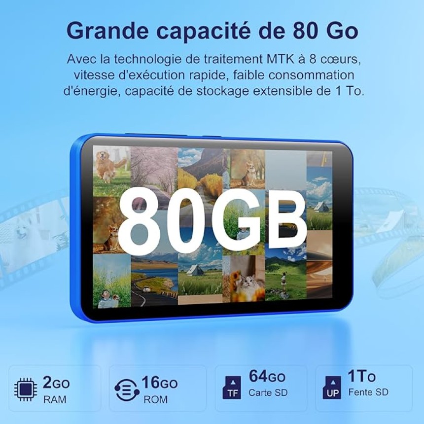 - ▶️ Capacité de stockage de la mémoire : 80 Go = 16GB Ram & 64GB SD card