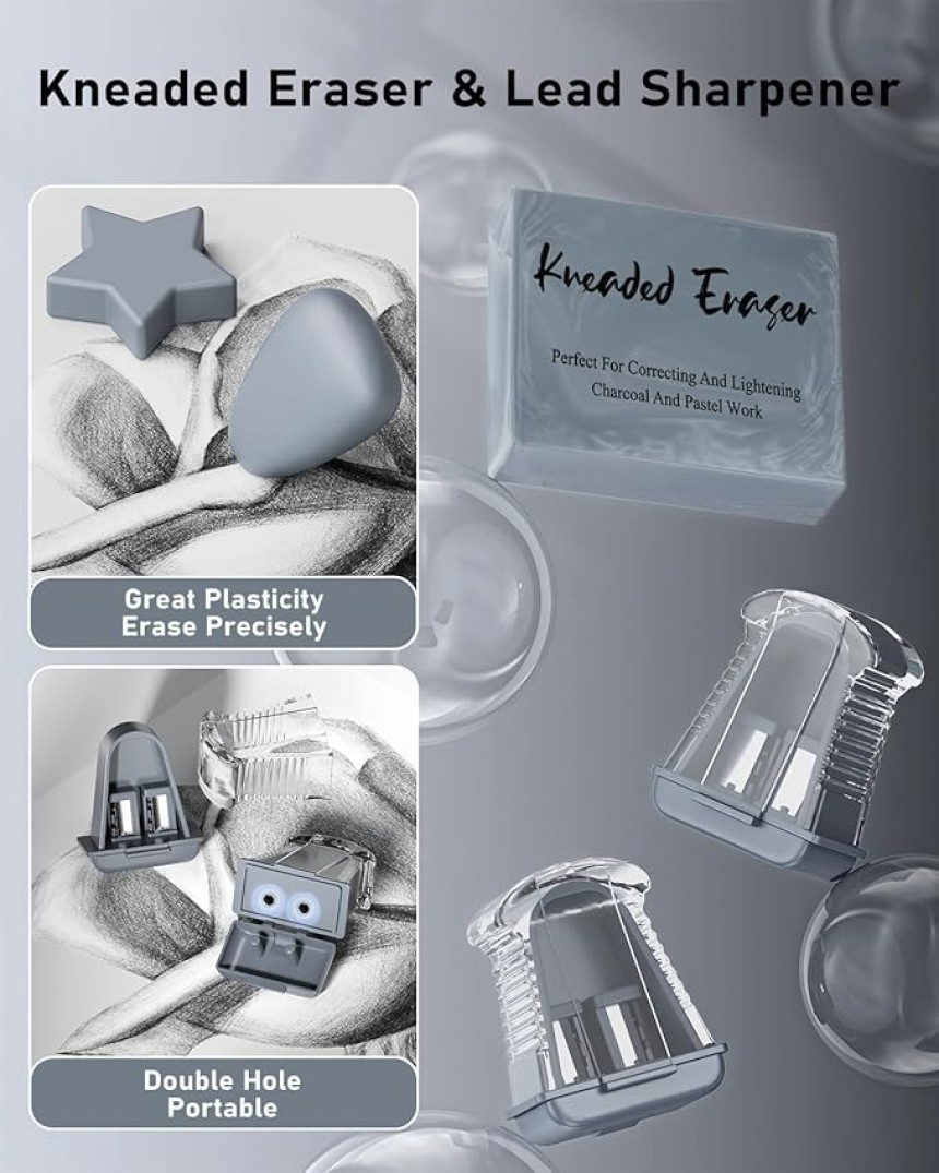 - ▶️ Gomme à Effacer Malaxée : Cette gomme corrige et éclaircit les travaux au fusain, au crayon et au pastel, tout en leur donnant la forme et la taille souhaitées. Elle est parfaite pour tout artiste ou utilisateur de crayon à dessin qui a besoin d'un outil fiable pour l'aider à dessiner et à réaliser des œuvres d'art.