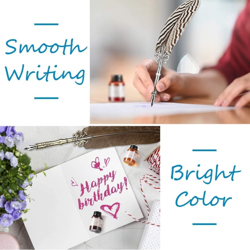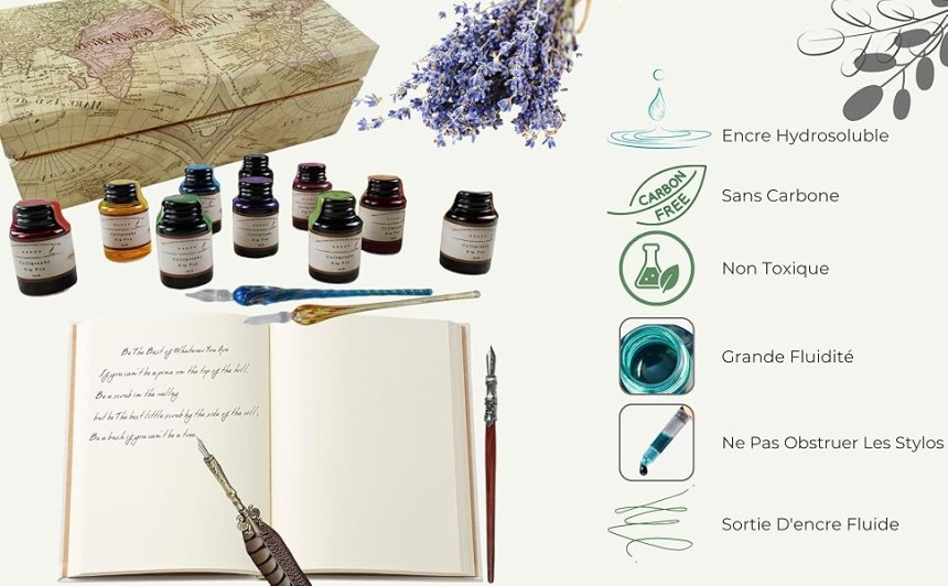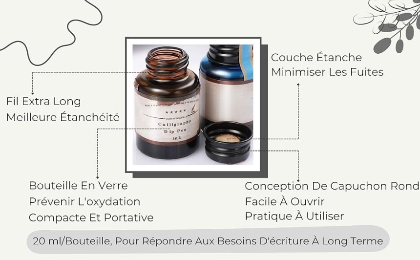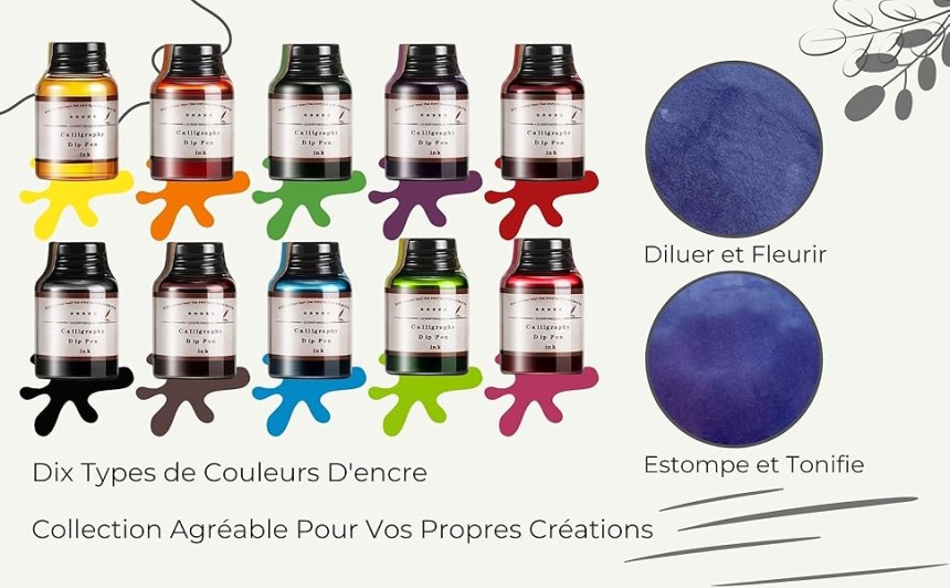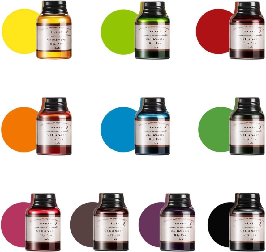 - ▶️ Encre de couleurs assorties : L'ensemble d'encres de calligraphie comprend 10 couleurs assorties (noir, bleu, rouge, vert, violet, orange, marron, rose, bordeaux, turquoise) et chaque couleur est contenue dans une bouteille d'encre de 20 ml. Par conséquent, vous avez la liberté de choisir entre différentes couleurs pour différents styles d'écriture, de dessin et de journalisation.