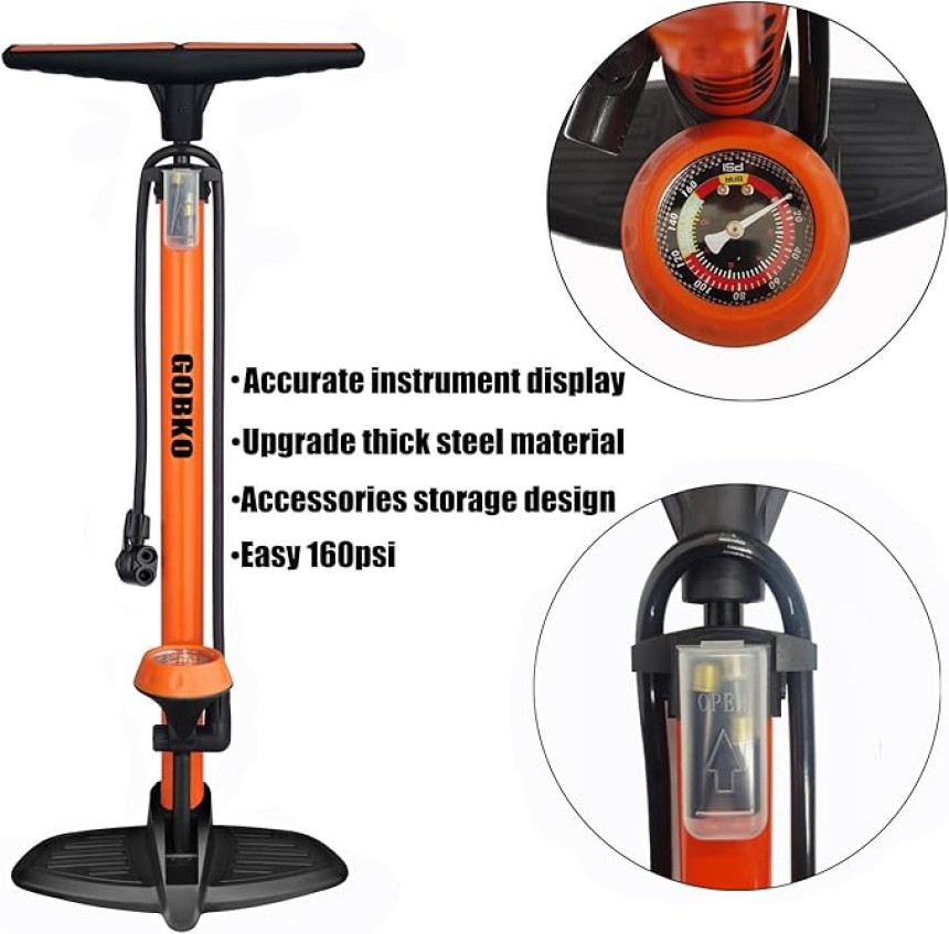 - ▶️ Mise à niveau de la conception et des matériaux - Pompe à vélo GOBKO Les tubes intérieurs et extérieurs sont en acier à haute résistance, qui est plus résistant à l'usure et a une surface lisse. Et le tube en caoutchouc de la pompe à air portable est détachable, résistant au gel et à haute température résistance, base de pompe plus large et plus épaisse, antidérapant, plus facile à gonfler rapidement