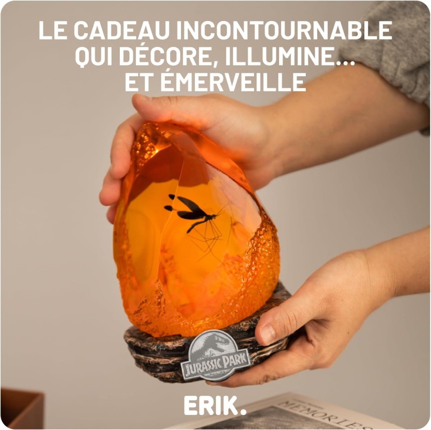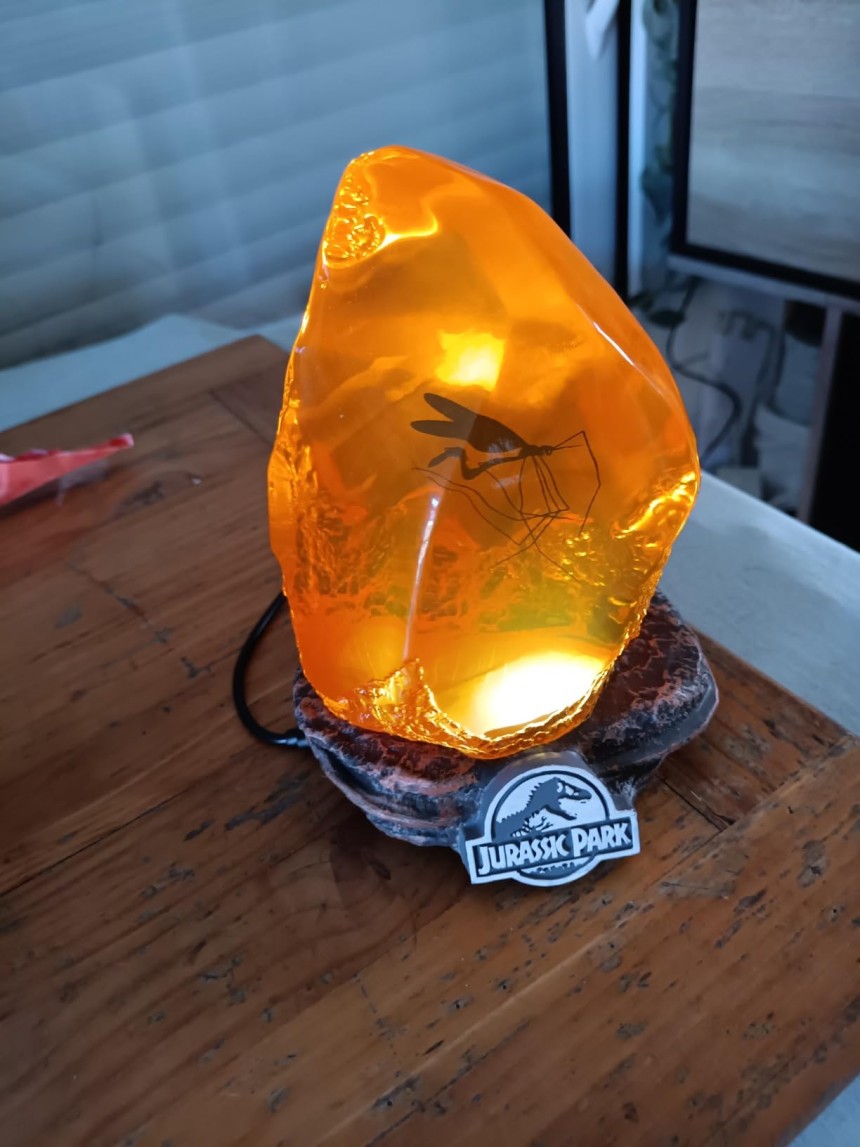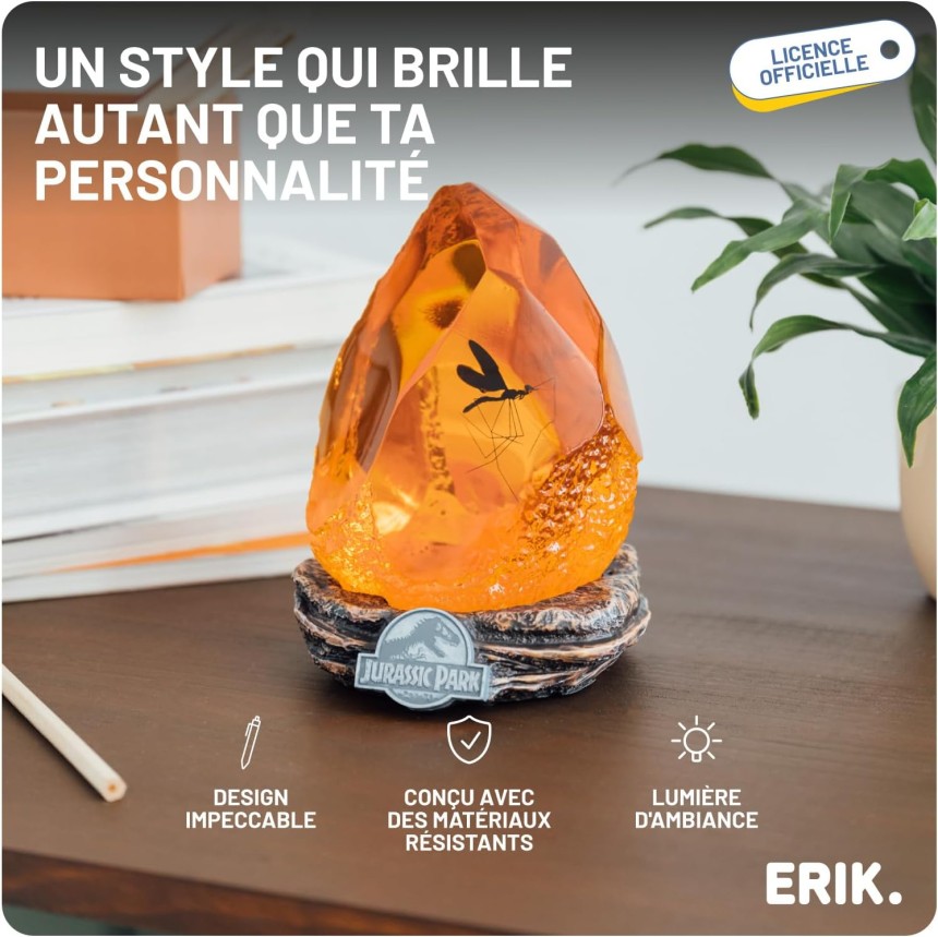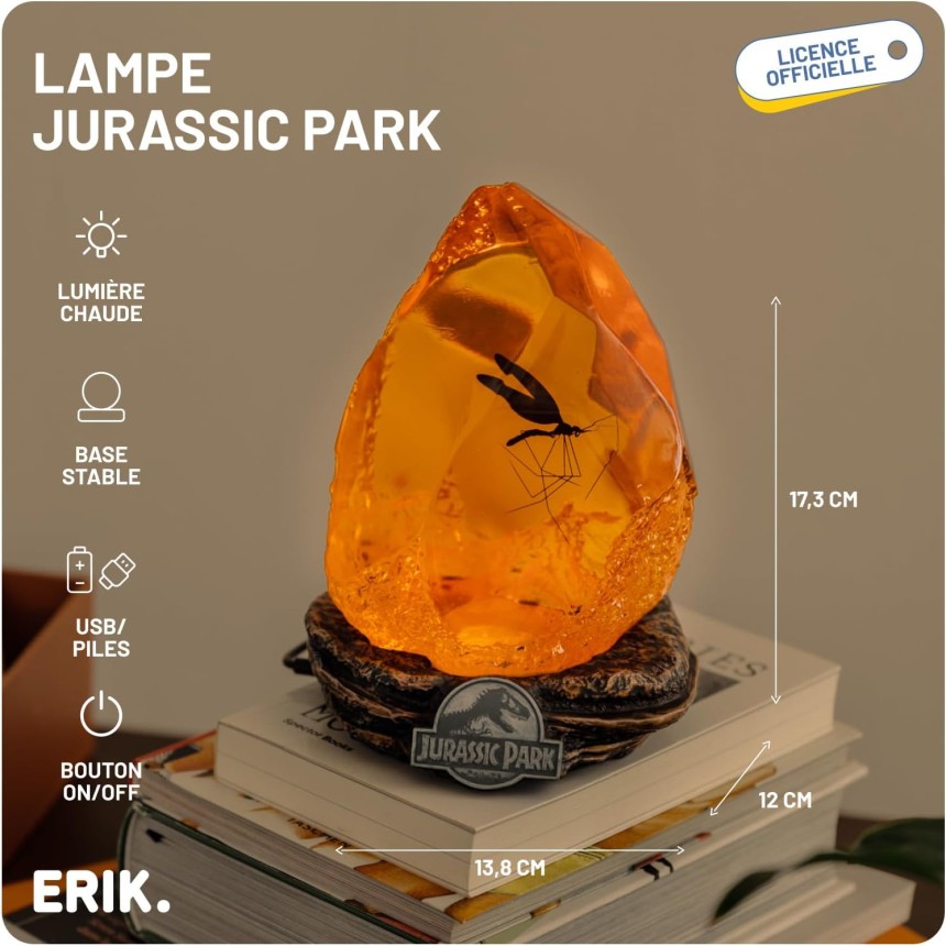 - ▶️ Cette lampe décorative inspirée du morceau d'ambre contenant le moustique à l'origine de la création de Jurassic Park, est idéale pour n'importe quel fan des films.