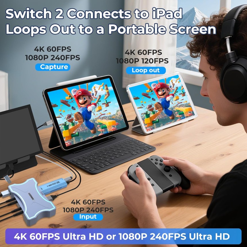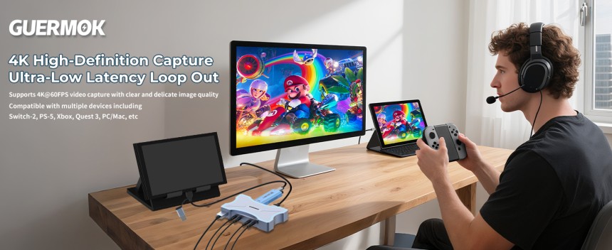 Guermok 4K HDMI Capture Card - Dual HDMI in/Loop-Out - USB 3.0 - 4K@60Hz / 2K@144Hz Video Capture - Mic/Line in - 4K60 Passthrough - Streaming and Gaming for Switch 2/1.