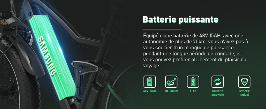 - ▶️ Autonomie Adaptée à Tous les Besoins - Grâce à son moteur de 250W et sa batterie amovible 48V 15Ah, le HITWAY BK9S offre une autonomie de 70 à 150 km selon le mode d'assistance, parfait pour les trajets courts ou les longues aventures.