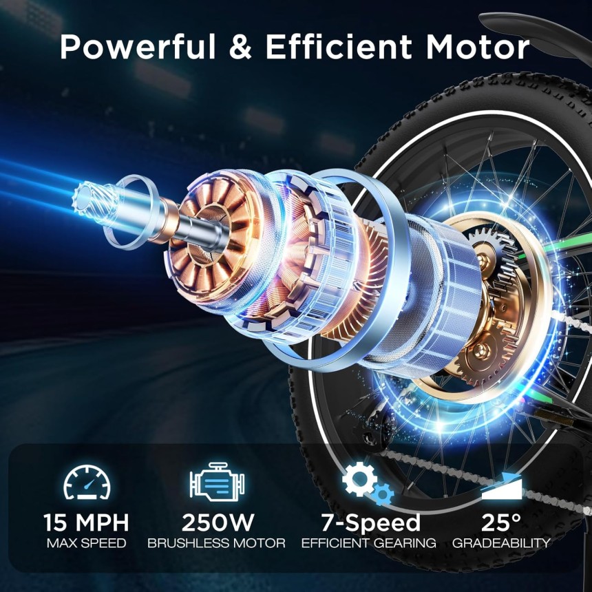 - Contrôle Précis avec 7 Vitesses - Le système de changement de vitesse à 7 vitesses permet de s'adapter à toutes les pentes, tandis que les freins à disque avant et arrière garantissent un freinage sûr et réactif.