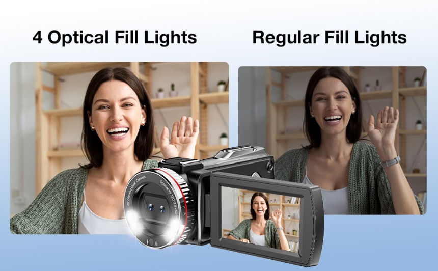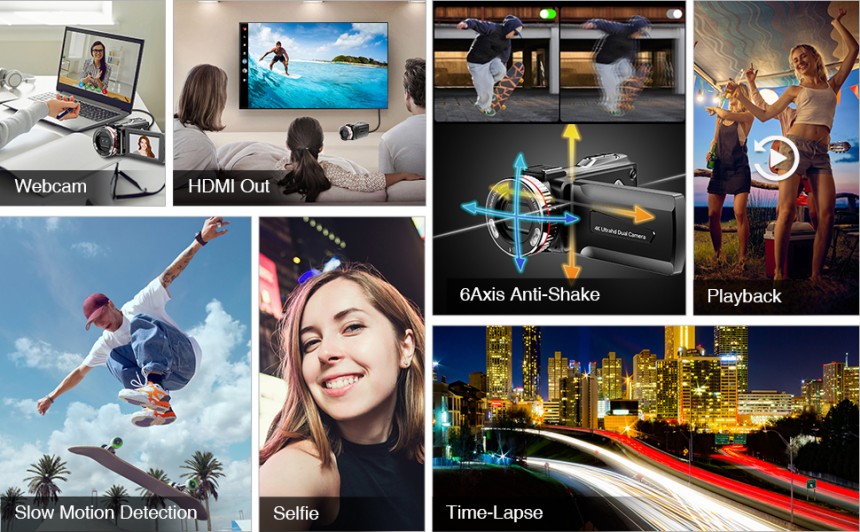 Caméra vidéo 4K 64MP Caméscope Vlogging - Caméra YouTube - Dual Camera 3Pouces - Écran Rotatif à 270° - Video Camera avec Carte 64 Go, Microphone, stabilisateur, télécommande, 2 Piles rechargeable.