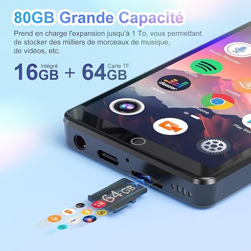 - ▶️ Capacité de stockage de la mémoire : 80 Go = 16GB Ram & 64GB SD card