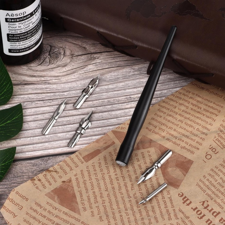 Kit de Calligraphie - Porte-Plume avec 1 Porte-Stylos Dip et 5 Plumes pour Dessin, Croquis, Cartographie - Ensemble à l'Encre.