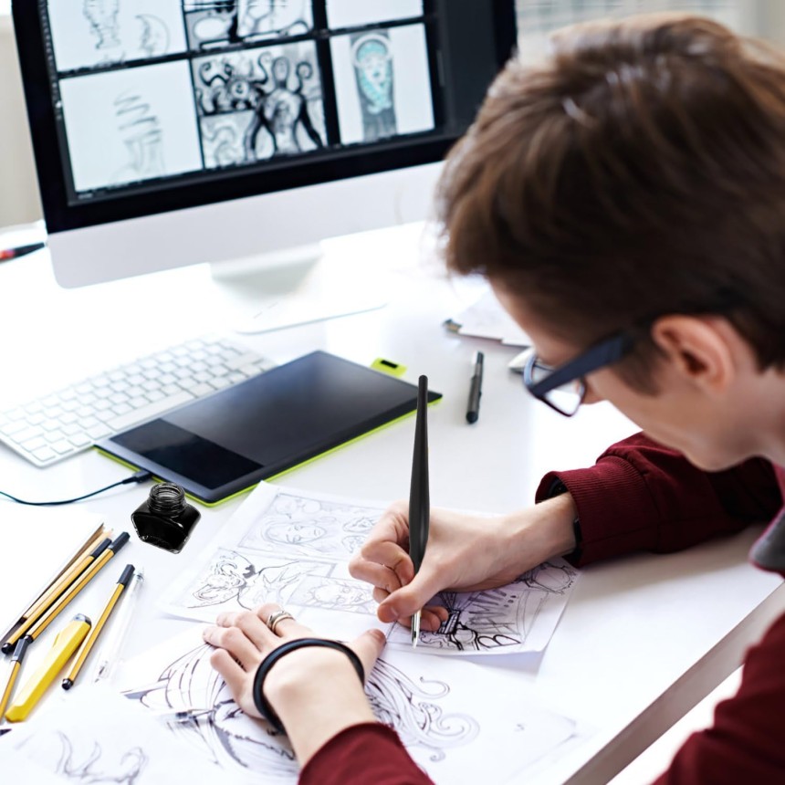 - ▶️ Les lignes tracées par le porte-plume et le support Set pour BD peuvent produire des lignes différentes en fonction de l'épaisseur, de l'angle et du niveau d'encre. Trempez l'encre plusieurs fois pendant le processus de dessin.
