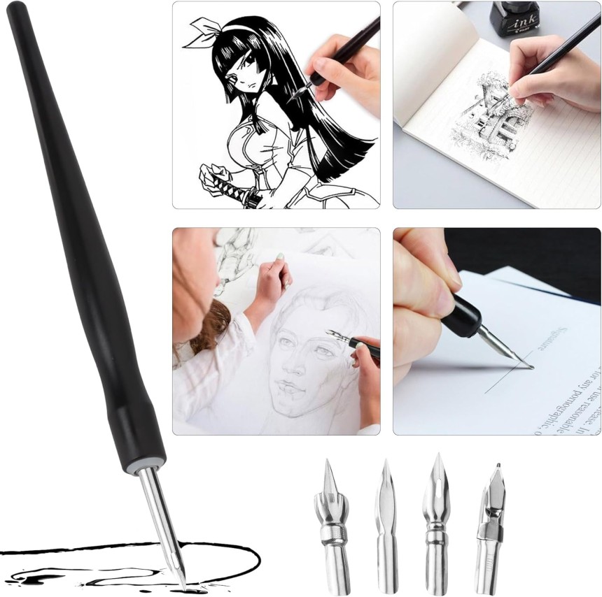 - ▶️ Porte-plume avec plume à dessiner idéal pour les lettres, la calligraphie, la création d'affiches, les dessins animés, les croquis, la cartographie. stylo à dessiner à l'encre de Chine est le choix parfait pour le dessin, la calligraphie, la conception artistique et la production d'affiches