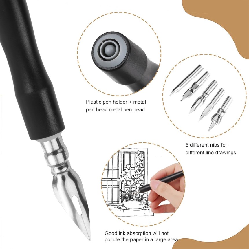 - ▶️ Application large : porte-plume avec plume à dessiner idéal pour les lettres, la calligraphie, la création d'affiches, les dessins animés, les croquis, la cartographie. Dessiner à la plume d'encre est le choix parfait pour le dessin, la calligraphie, la conception artistique et la production d'affiches