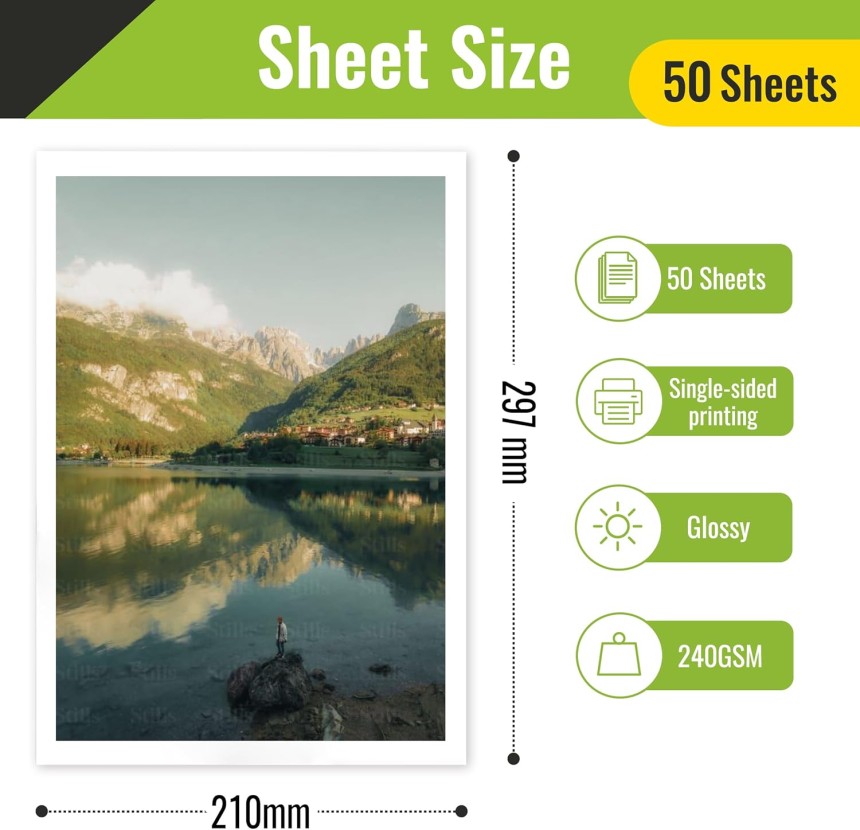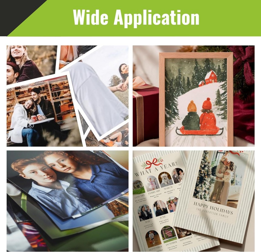 - ▶️ Compatible avec les imprimantes à jet d’encre. Veuillez sélectionner le mode « Papier photo/brillant » en fonction de votre imprimante et du type d’encre pour garantir une saturation des couleurs et un séchage optimaux.