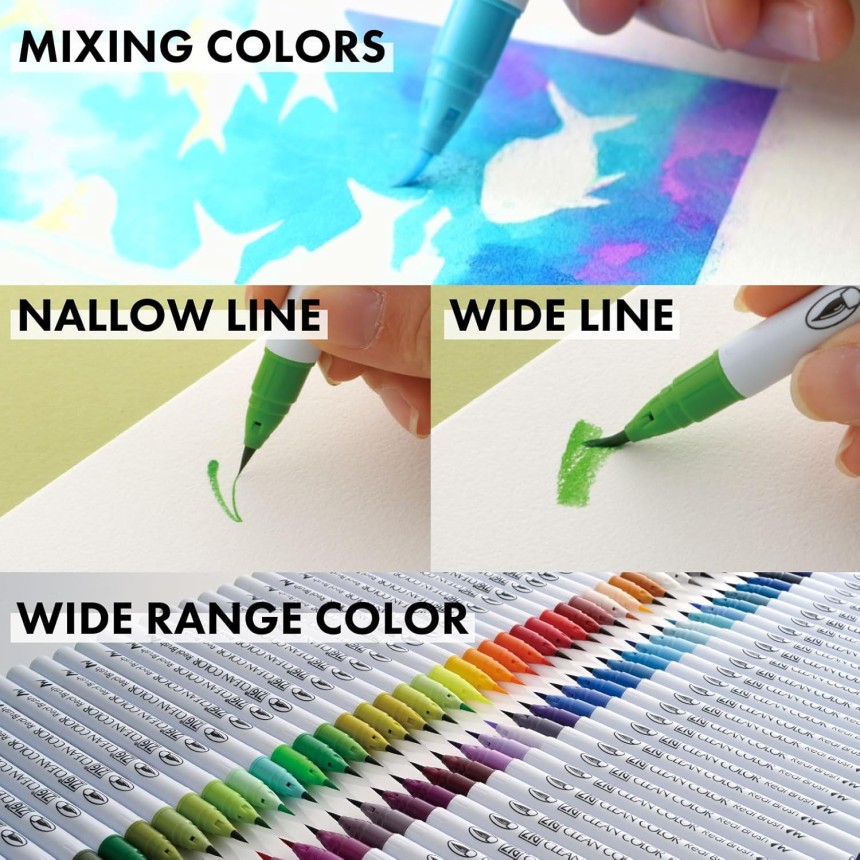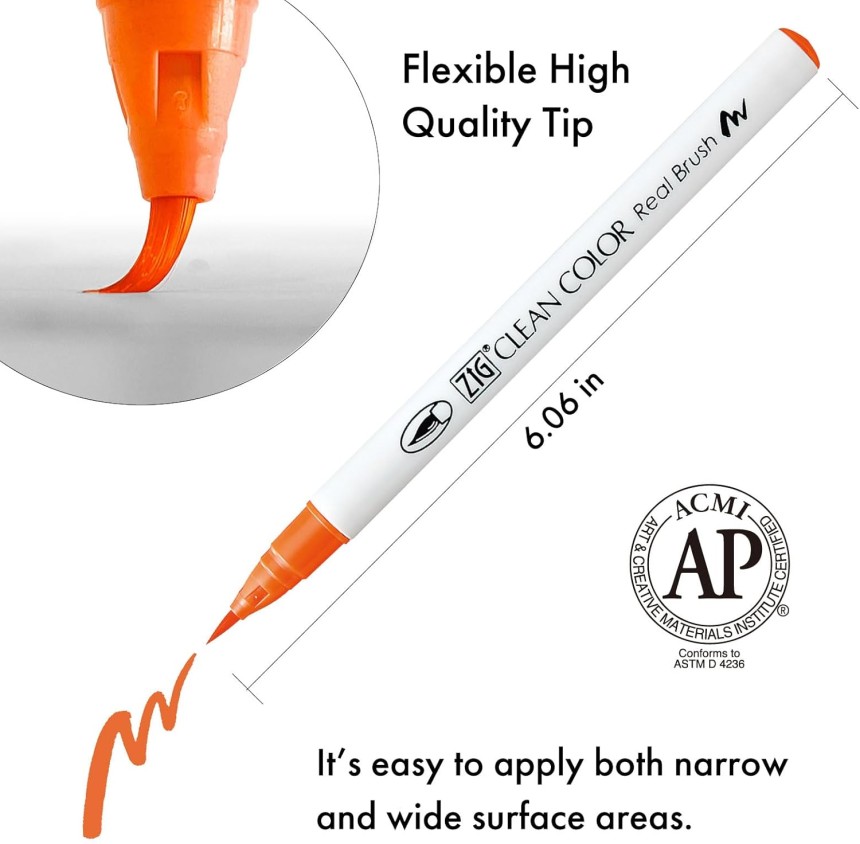 - ▶️ HIGH QUALITY : Flexible nylon brush tip makes it easy to create both narrow and wide lines. Great brush pens for watercolor painting, brush lettering, modern calligraphy and more. In 1973, Kuretake developed "Kuretake Fude Pen" and has developed various brush pen since then. Since the development of brush pen technology also applies to the ZIG Clean Color Real Brush, it has become a high-quality watercolor brush pen.