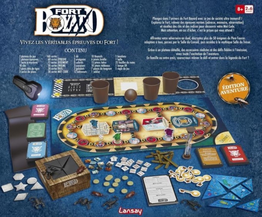 - ▶️ Jeu d'aventure familial inspiré de Fort Boyard : Relevez les défis mythiques du Fort avec ce jeu immersif signé Lansay ! Adapté dès 8 ans, il propose une expérience fidèle à l’émission culte. En famille ou entre amis, affrontez les épreuves et récoltez les clés pour atteindre le trésor.