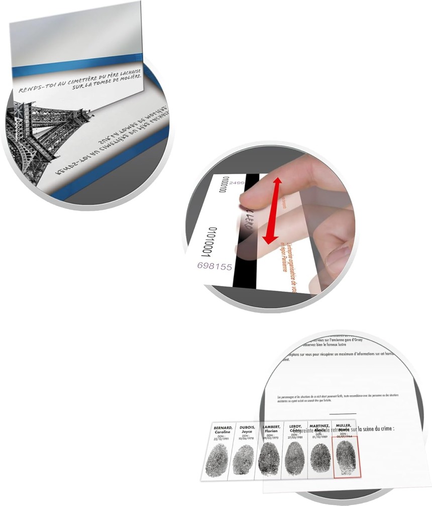 - ▶️ Messages secrets & décodeurs inclus : Utilisez les 3 décodeurs fournis pour révéler des indices cachés et décrypter des messages invisibles ! Chaque partie devient une véritable aventure immersive où vos découvertes vous rapprochent (ou vous éloignent !) de la vérité. Une mécanique magique adorée des enfants.