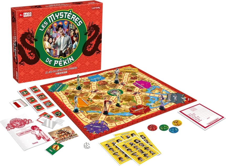 - ▶️ Plongez au cœur de la Chine mystérieuse avec Les Mystères de Pékin – Nouvelle Édition, le jeu d’enquête familial culte revisité avec 50 énigmes entièrement inédites ! À chaque partie, un mystérieux crime secoue la ville : qui a saboté un portrait ? Qui a poussé M. Can Ting dans l’aquarium ? Qui a vidé les boîtes de lessive de M. Xi Di ? Votre mission : collecter les indices, interroger les témoins et démasquer le coupable avant les autres détectives. Mais attention… certains témoins mentent, et des dragons peuvent bloquer votre progression ! Grâce aux décodeurs magiques, révélez des messages secrets et débloquez de nouvelles pistes. Chaque enquête se transforme en aventure immersive où réflexion, déduction et sens de l’observation seront indispensables. Avec son plateau coloré, ses 108 cartes, ses décodeurs, ses pions détective et son bloc d’enquête, cette édition offre une expérience complète et captivante pour 2 à 6 joueurs, dès 8 ans. Un indispensable pour les familles, les enfants, les amateurs d’énigmes et les fans du jeu original. Préparez-vous : seul le meilleur détective remportera la partie !