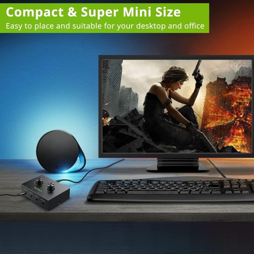 - ▶️ Avec le Sélecteur Audio : Vous pouvez sélectionner les sources d'entrée audio et les périphériques de sortie audio par sélecteur (A/B/C/D). Contrôle du volume sur le commutateur facile à utiliser