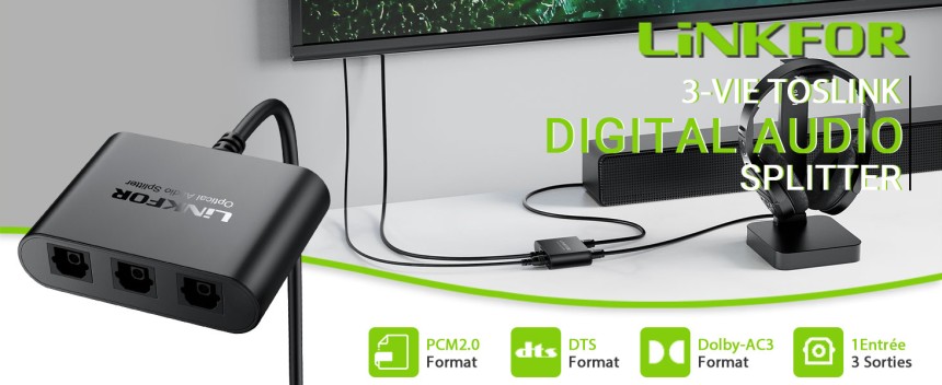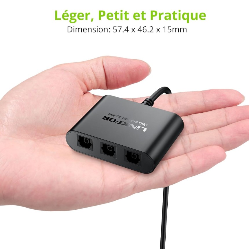- ▶️ 1x3 Optical Fibre Splitter : Avec 1 interfaces d'entrée Toslink / SPDIF et 3 interfaces de sortie Toslink / SPDIF, optique audio splitter LiNKFOR peut diviser un signal d'entrée en trois signaux de sortie, c'est-à-dire de synchroniser le signal audio des lecteurs Blu-ray, des consoles de jeux, des téléviseurs HD, etc., vers l'amplificateur d'entrée optique, le casque sans fil ou les haut-parleurs de bar