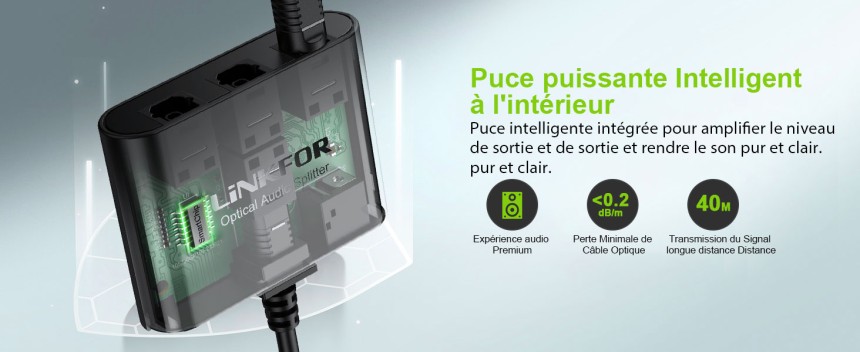 - ▶️ Transmission sans Perte & Longue Distance : Grâce à un câble à fibres optiques et puce de haute qualité, la distance de transmission du signal de diviseur audio optique peut atteindre 40m / 130pi, perte de signal inférieure à 0,2 dB / m, apportant une excellente expérience sonore