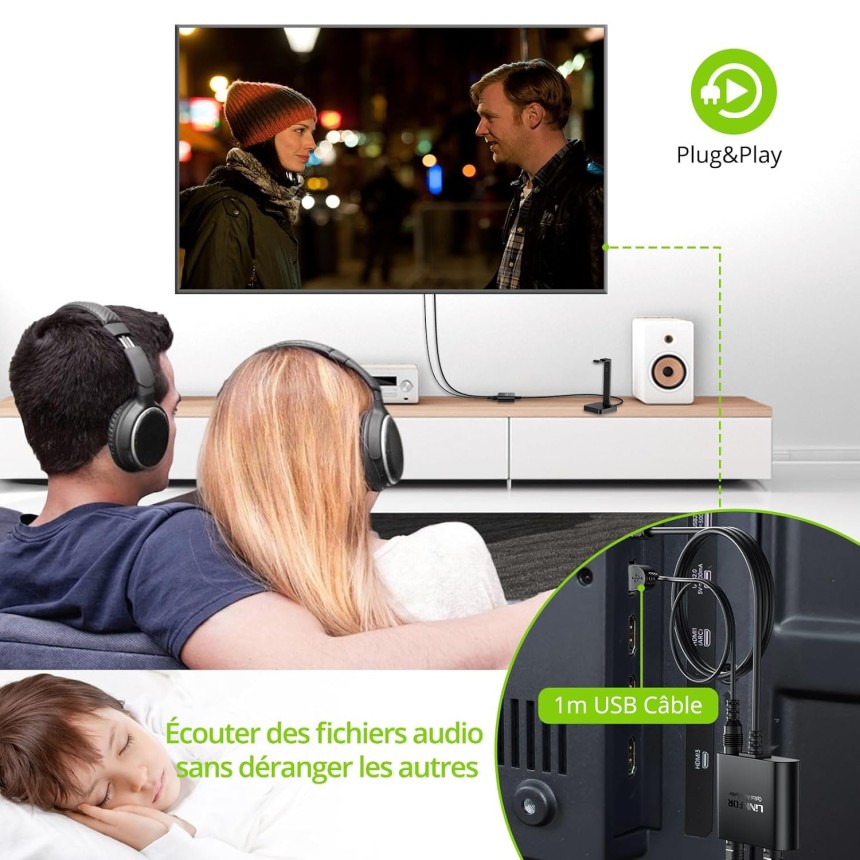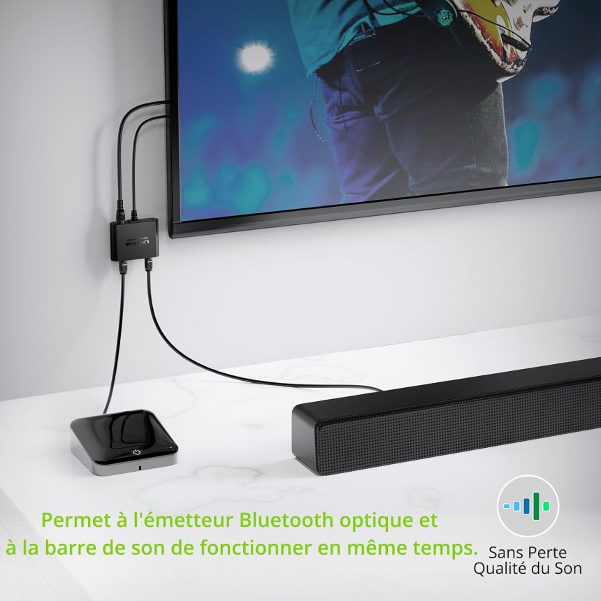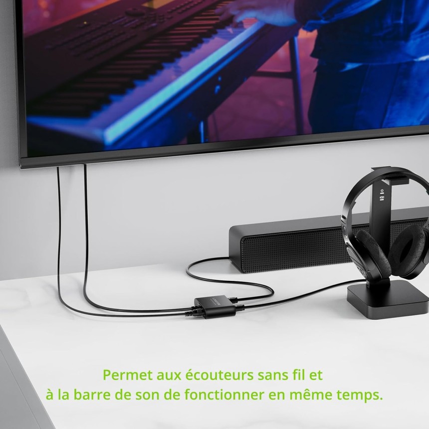 - ▶️ Plug and Play : Câble optique de 1 m intégré pour une connexion directe à la TV/DVD/console de jeux, sans besoin de connexion de câble optique supplémentaire. Léger, le répartiteur câble optique peut être accroché au mur sans prendre de place