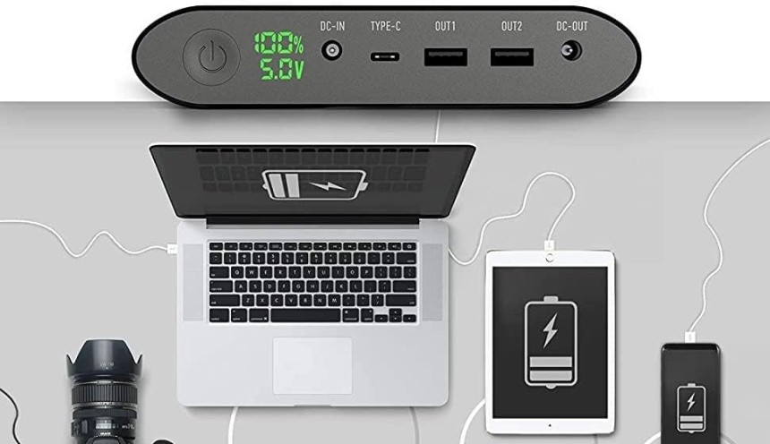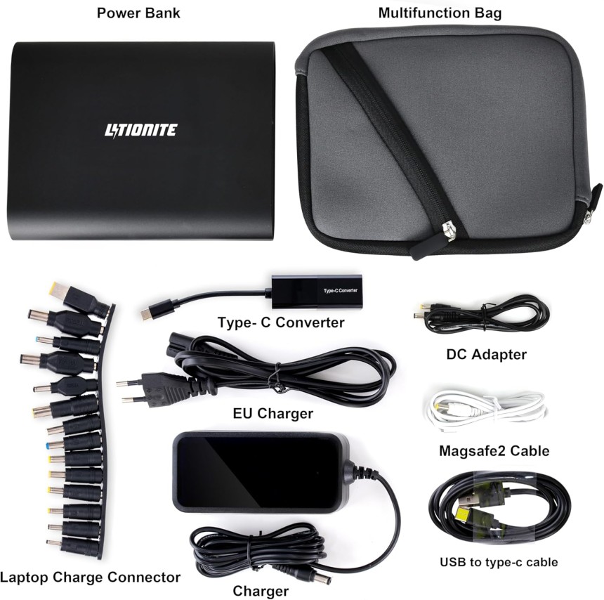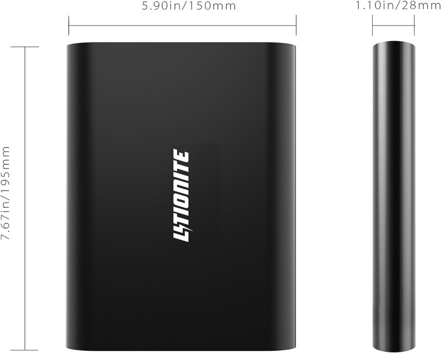 LITIONITE Tanker 90W / 50.000mAh Power Bank Batterie Externe portable avec Display LED - 2x USB - 1x Type-C (36W) - 1x DC (90W) - Chargeur pour PC/Ordinateur Portable/Notebook/Smartphone/Tablet/Laptop.