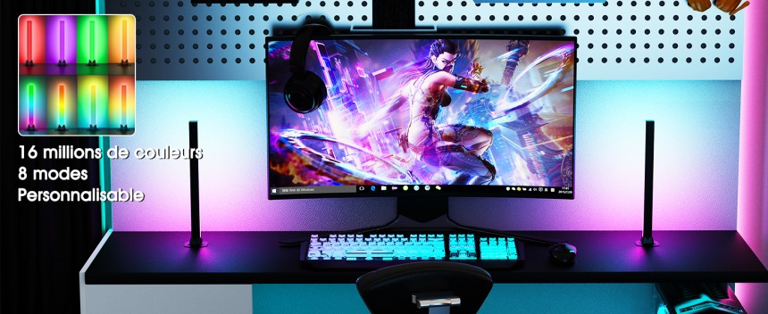 - ▶️ Bande lumineuse RVB colorée : le réglage de la couleur de la lumière est divisé en toute section et segment, offre différentes colonnes pour la sélection de couleurs ou l'édition et peut régler la luminosité. Dans l'interface de la section, vous pouvez faire des retouches DIY ou effacer la couleur de cette section et ajuster l'effet de gradient