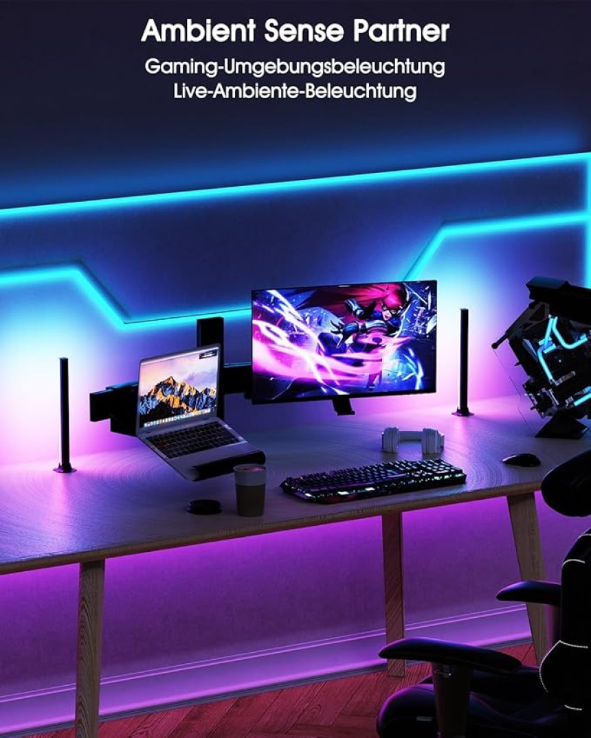 - ▶️ Les bandes lumineuses Smart Ambient présentent un arc-en-ciel d'effets qui vous offrent une expérience visuelle époustouflante : la couleur et le mode des bandes lumineuses dansent avec la musique et créent une atmosphère de fête amusante et détendue