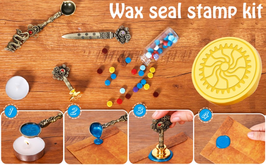 - ▶️ Kit de cachet de cire : Notre cachet de cire est composé d'une tête en laiton de qualité supérieure et d'une tige en métal à dents d'engrenage, le tampon est imprimé avec un motif de "montre à engrenages". Il crée des détails complexes et laisse une empreinte propre et belle. La tête en laiton avec tampon est amovible et peut être utilisée avec n'importe quel motif de tampon. Il évite l'ouverture de documents importants lors de la décoration, l'embellissement, des invitations, des enveloppes, des cartes postales, des marques-cadeaux et d'autres informations privées.